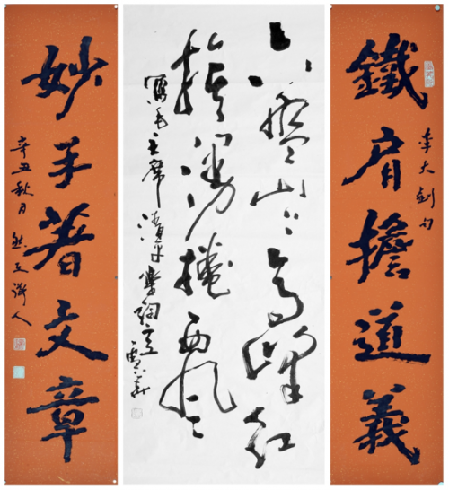 艺术成就斐然,市场表现稳健。陶雪华曾获“影响中国的十大艺术新闻人物”等殊荣,出版《陶雪华书法集》多部,作品斩获多项全国性书法大奖。近年拍卖市场成交屡创新高:2024年南京拍场,其红色主题狂草《清平乐·会昌》中堂以8.6万元成交;2023年北京拍场,禅意《心经》中堂+对联以12.8万元落槌;2025年浙江拍场,大篆对联+《弥勒经》团扇中堂成交价达11.2万元,精品大尺幅作品更是突破15万元,市场润格年均涨幅超15%,升值势头强劲。